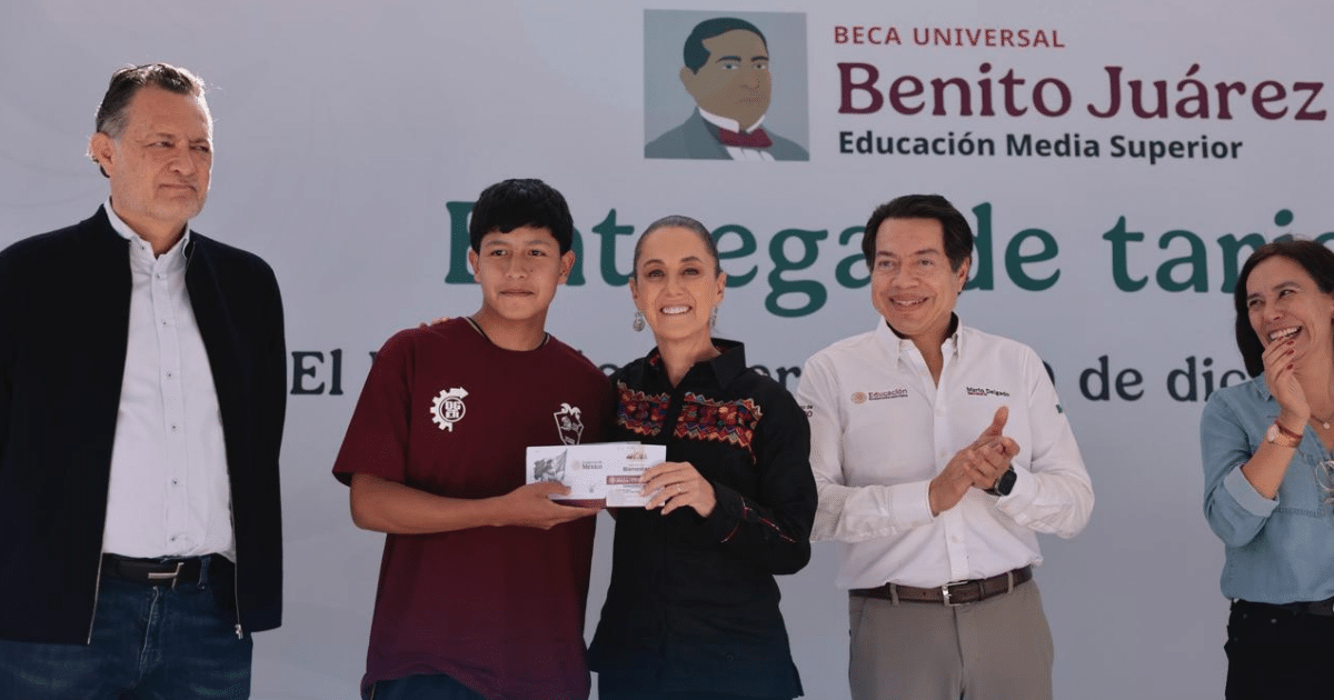 En Querétaro, la Presidenta de México, Claudia Sheinbaum Pardo, encabezó la entrega de tarjetas de la Beca Universal para la Educación Media Superior “Benito Juárez” y supervisó la construcción del nuevo Centro de Bachillerato Tecnológico Industrial y de Servicios (CBTIS) No. 304, en el municipio de El Marqués, que tiene un 90 por ciento de avance y estará listo el 27 de diciembre para ser inaugurado en febrero, y con ello cumplir el sueño de que las y los jóvenes vayan a la preparatoria y accedan a la educación como un derecho.