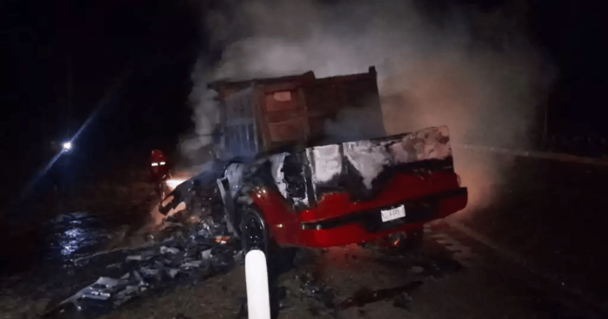 De acuerdo con los primeros reportes, una camioneta particular colisionó contra un camión tipo volquete que transportaba grava, lo que provocó que ambas unidades salieran de la vía y posteriormente quedaran envueltas en llamas. Las autoridades confirmaron que los vehículos involucrados fueron una camioneta roja con placas YU-9445-E del estado de Yucatán y un volquete blanco con matrícula SZ-3489-N; trascendió que en la camioneta viajaba una familia originaria de Yucatán.