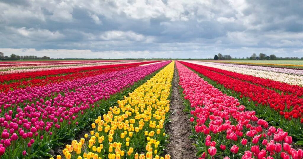 Los campos multicolores, que florecen principalmente entre marzo y mayo, se han convertido en un símbolo de identidad nacional y en un motor clave del turismo holandés.
