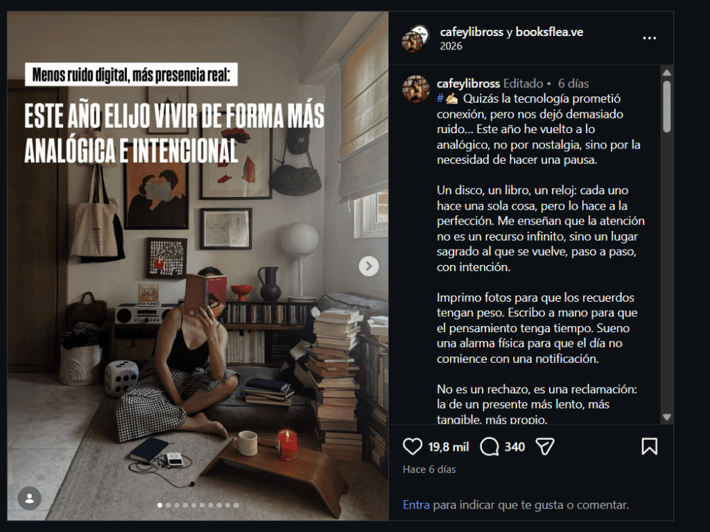 Quizá el verdadero trend de 2026 no esté en una prenda, una app o una estética, sino en algo más simple y profundo: volver a lo tangible para habitar el presente con mayor claridad. La invitación está abierta. ¿Dónde eliges poner tu pausa?
