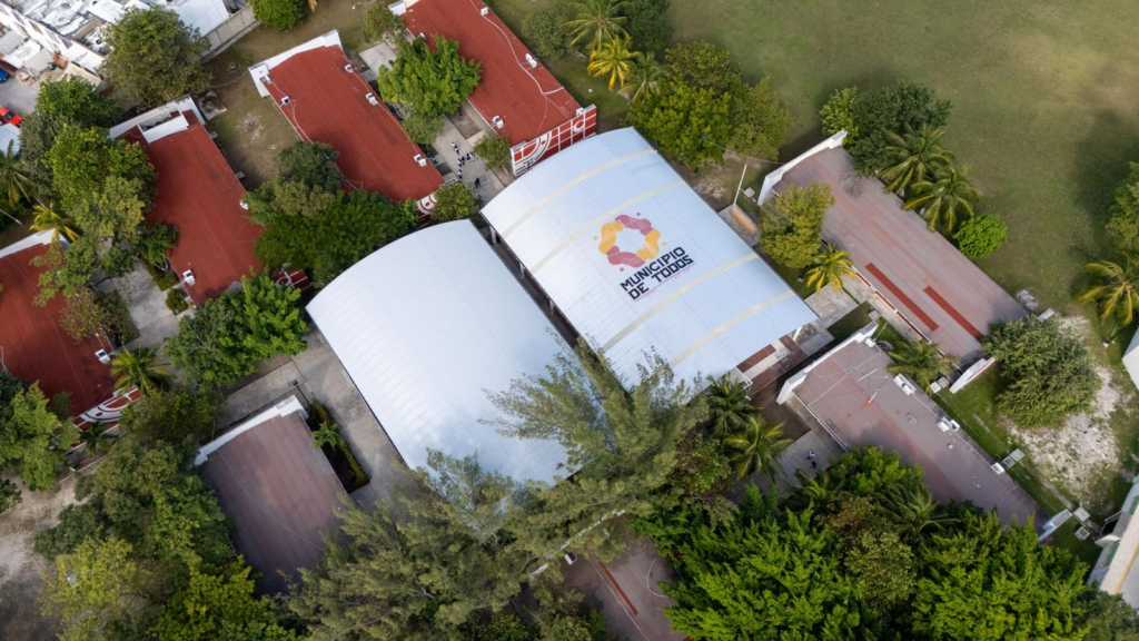 La gobernadora Layda Sansores realizó una gira de trabajo en el municipio de Carmen, acompañada del alcalde Pablo Gutiérrez Lazarus, para encabezar la inauguración del domo y la remodelación de la cancha de usos múltiples de la Escuela Secundaria General No. 5. La obra tuvo una inversión de 3.5 millones de pesos y beneficiará directamente a 893 estudiantes, proporcionando espacios más seguros y funcionales para la actividad física y educativa.