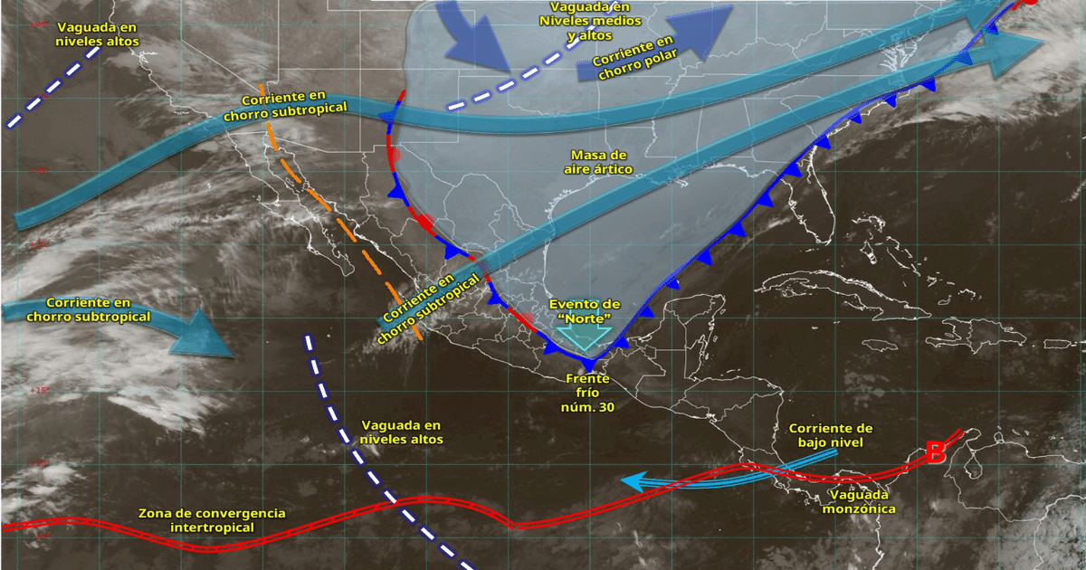 El avance del frente frío número 30 sobre el sur del golfo de México generará lluvias intensas a torrenciales en el sureste del país, además de un evento de Norte muy fuerte en zonas costeras. Autoridades alertan por posibles inundaciones, deslaves y oleaje elevado.