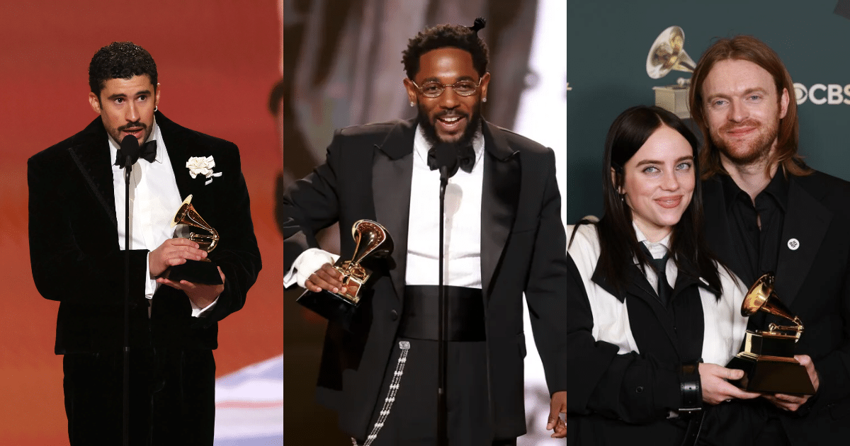 En las categorías más importantes de la noche, Kendrick Lamar junto a SZA se llevaron el premio a Grabación del Año por Luther, mientras que Bad Bunny obtuvo el Álbum del Año con DeBÍ TiRAR MáS FOToS, consolidando su dominio en la música global y urbana.
