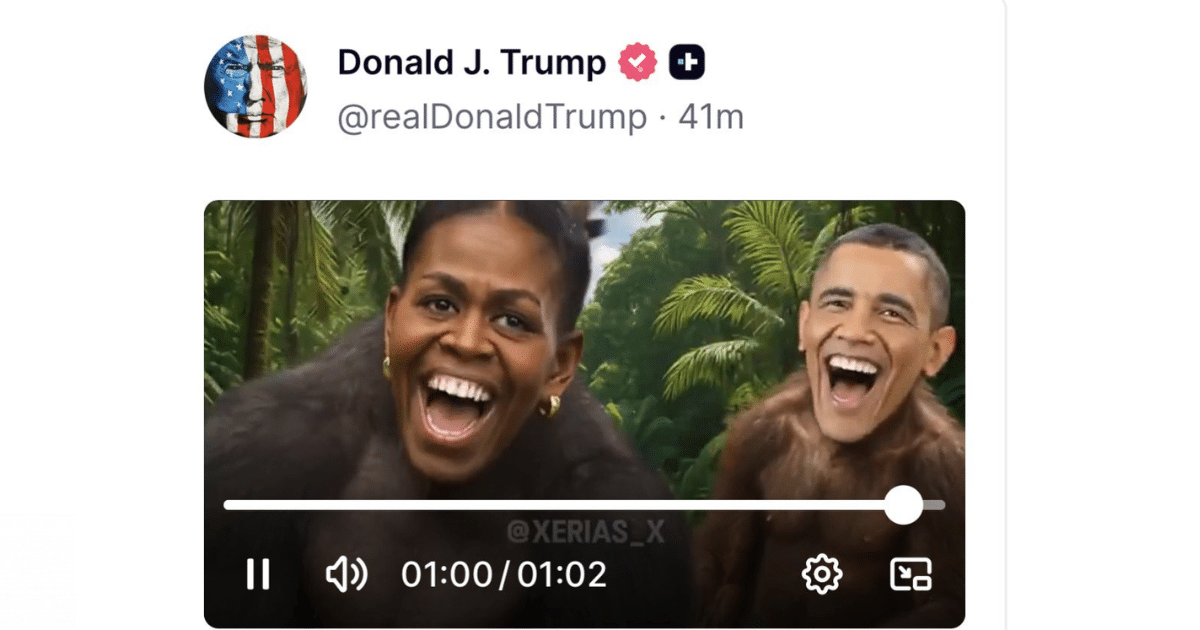 En los últimos segundos del clip aparecen brevemente dos primates con los rostros de Barack y Michelle Obama superpuestos, escena que detonó las críticas. El material habría sido tomado de un video más extenso creado por un productor de memes conservador, donde distintos líderes demócratas son representados como animales.