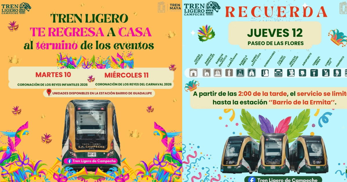 Tren Ligero garantiza transporte nocturno durante el Carnaval de Campeche