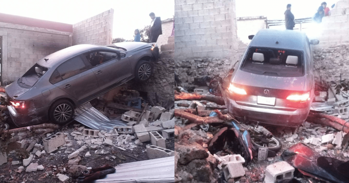 La madrugada de este jueves, un conductor presuntamente alcoholizado provocó un accidente en el barrio Nuevo Amanecer, en el poblado de Villa Madero, Champotón, cuando perdió el control de su vehículo al dar reversa. La unidad terminó dentro de un domicilio, derribando la barda del frente y causando daños a la propiedad.