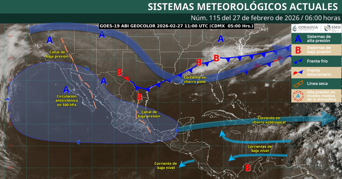 Pronóstico del clima en México hoy 27 de febrero de 2026