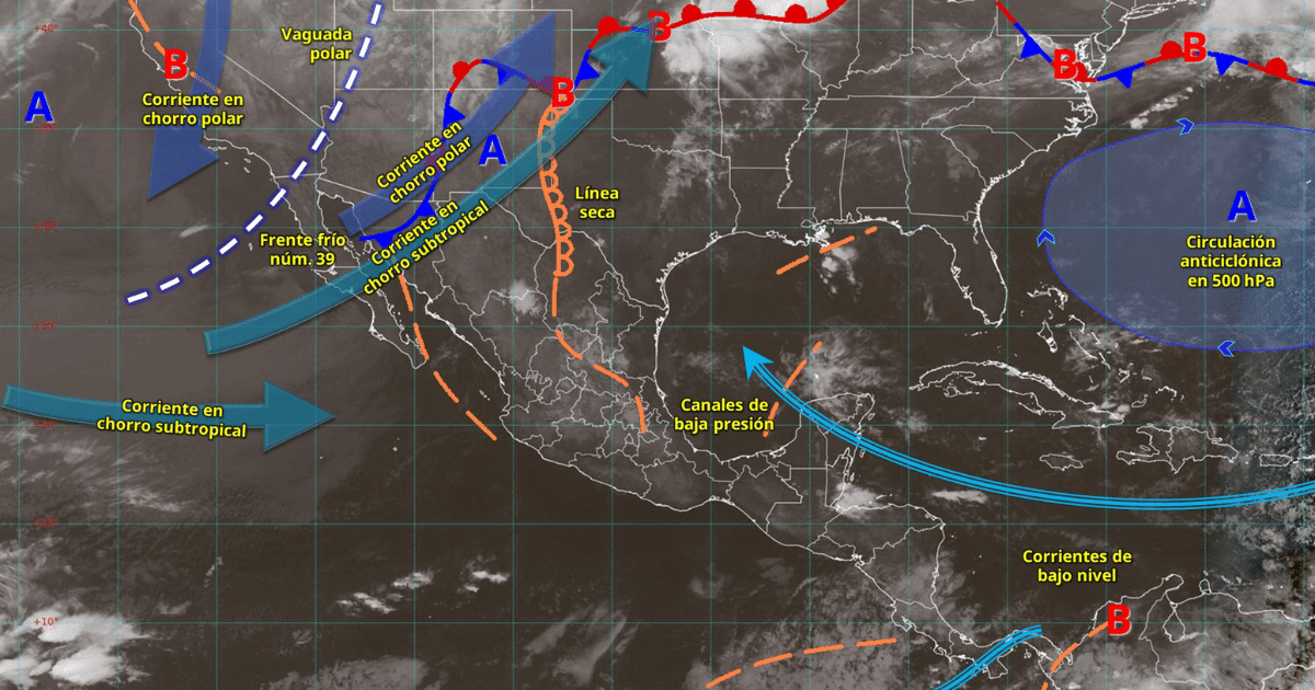 Mientras el sureste se prepara para el agua, el norte enfrenta la fuerza del frente frío núm. 39. La interacción con la línea seca es particularmente peligrosa en el norte de Coahuila, donde las condiciones de cizalladura del viento son propicias para la formación de torbellinos.