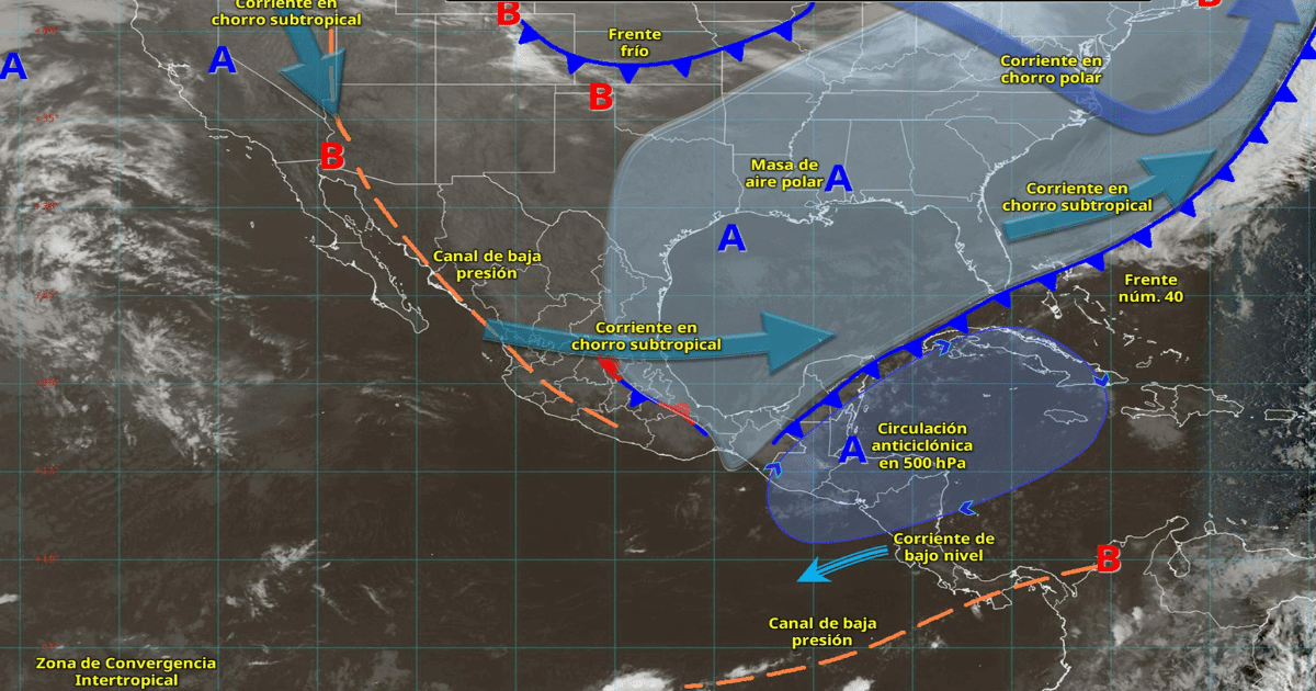 El frente frío número 40 se mantendrá sobre el noreste de la Península de Yucatán y ocasionará lluvias intensas en el sureste de México. Aunque la masa de aire polar asociada comenzará a modificar sus características, permitiendo un aumento gradual de las temperaturas diurnas en varias regiones del país, también se prevén rachas de viento fuertes en el sur y lluvias acompañadas de descargas eléctricas en distintos estados.