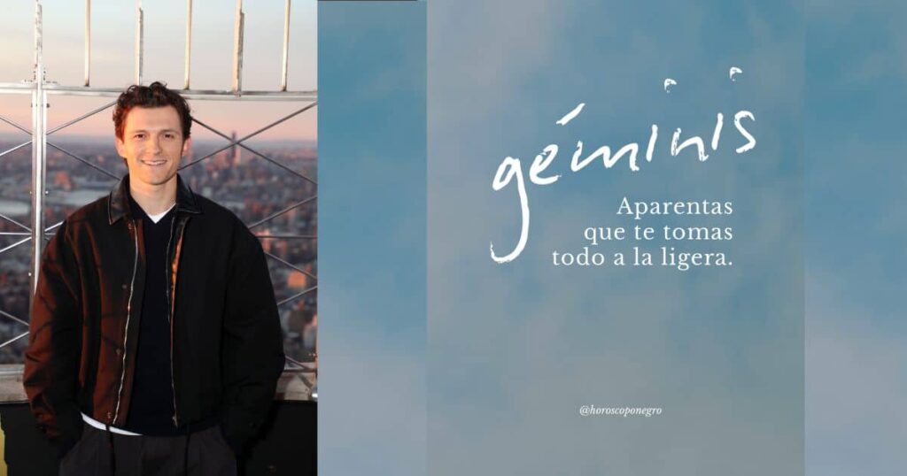 Tom Holland es del signo Géminis, ya que nació el 1 de junio, un signo caracterizado por la comunicación, la versatilidad y la energía mental.