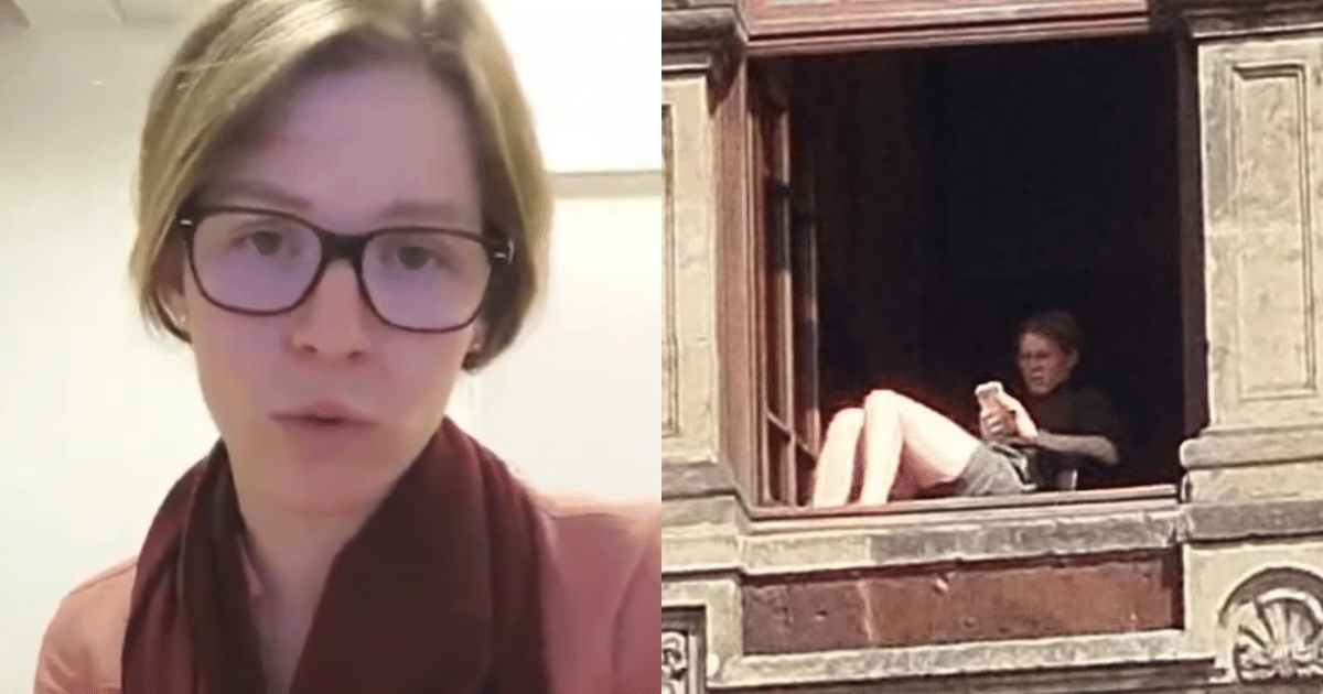 En ellos, se observa a una mujer recostada en un balcón del recinto histórico, utilizando su teléfono móvil.