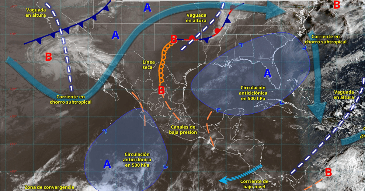 Este jueves 16 de abril de 2026, el panorama meteorológico en México presenta condiciones severas en ambos extremos del país. La interacción de una línea seca sobre el noreste y la corriente en chorro subtropical generará vientos intensos en la franja fronteriza. Simultáneamente, canales de baja presión en el sureste y el ingreso de humedad del Caribe provocarán lluvias puntuales fuertes en Chiapas, acompañadas de actividad eléctrica.
