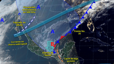 Durante esta noche y madrugada del sábado, el frente frío No. 25 se desplazará sobre el oriente y sureste de México en…